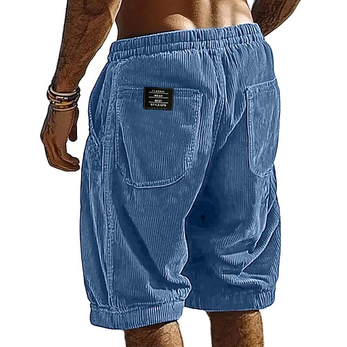 Per uomo Shorts Pantaloncini casual Pantaloncini di velluto a coste Tasca Elastico in vita Semplice Traspirante Lunghezza al ginocchio All'aperto Vacanza Abbigliamento quotidiano Vacanza Moda Nero
