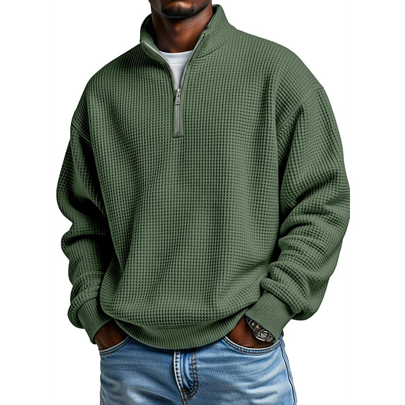 Men's Plaid Waffle Polo Shirts Zip Polo Shirts Long Sleeve Polo Shirts Grandad Collar Casual School Athleisure Holiday Daily Wear 3D Print Quarter Zip Polo Spring Fall Blue Navy Blue Dark Green