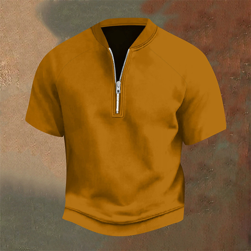 Men's Zip Polo Textured Casual Holiday Lapel Quarter Zip Short Sleeve Vintage Fashion Plain Quarter Zip Summer Regular Fit Light Blue Black White Gray Zip Polo