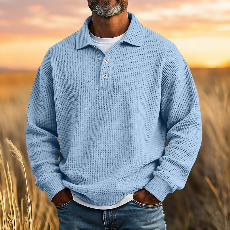 Men's Waffle Polo Shirts Golf Shirt Work Casual Lapel Long Sleeve Basic Modern Plain Buttons Spring Fall Regular Fit Blue Deep Green Wine Black White Light Green Waffle Polo Shirts