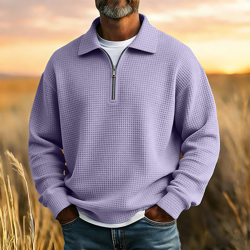 Men's Waffle Polo Shirts Textured Casual Quarter Zip Long Sleeve Fashion Modern Solid Color Textured Zipper Fall Spring Fall All Seasons Regular Fit Black Light Green Purple Light Blue Waffle Polo
