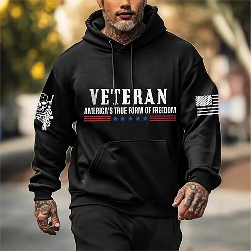 Per uomo Lettera Stampe Grafiche Bandiera Nazionale Felpa con Cappuccio Moda Quotidiano Casual Manica Lunga Con Cappuccio Vacanza Feste Abbigliamento casual alla moda Festival Nero Blu reale Marrone