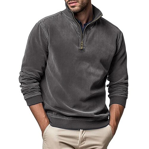 Per uomo Maglia Maglione Felpa con zip corta Rosso bordeaux Nero Verde militare Blu marino Blu Reale Colletto Mao Semplice Zip a un quarto Sport Outdoor Casuale Quotidiano Vintage Streetwear