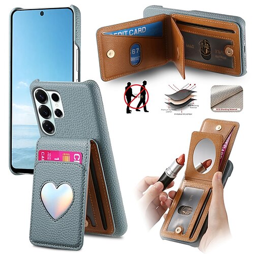 Handy Hülle Handyhüllen Für Samsung Galaxy S26 S26 Plus S26 Ultra Rückseite Brieftaschenhülle Mit Ständer Spiegel Herz Retro TPU PU-Leder