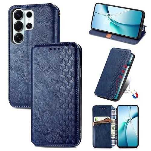 Handy Hülle Handyhüllen Für Samsung Galaxy S26 S26 Plus S26 Ultra Magnetische Adsorption Brieftaschenhülle Schlankes Gehäuse Ständer Retro Geometrisches Muster TPU PU-Leder