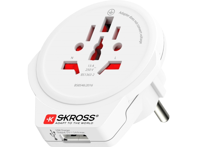 Skross 1.500266, Type F, Universell, Type L (IT), Type B, Type I (AU), Type C, Type J (CH), Type N (BR), Type G (UK), 100-250 V, 50 - 60 Hz, 16 A
