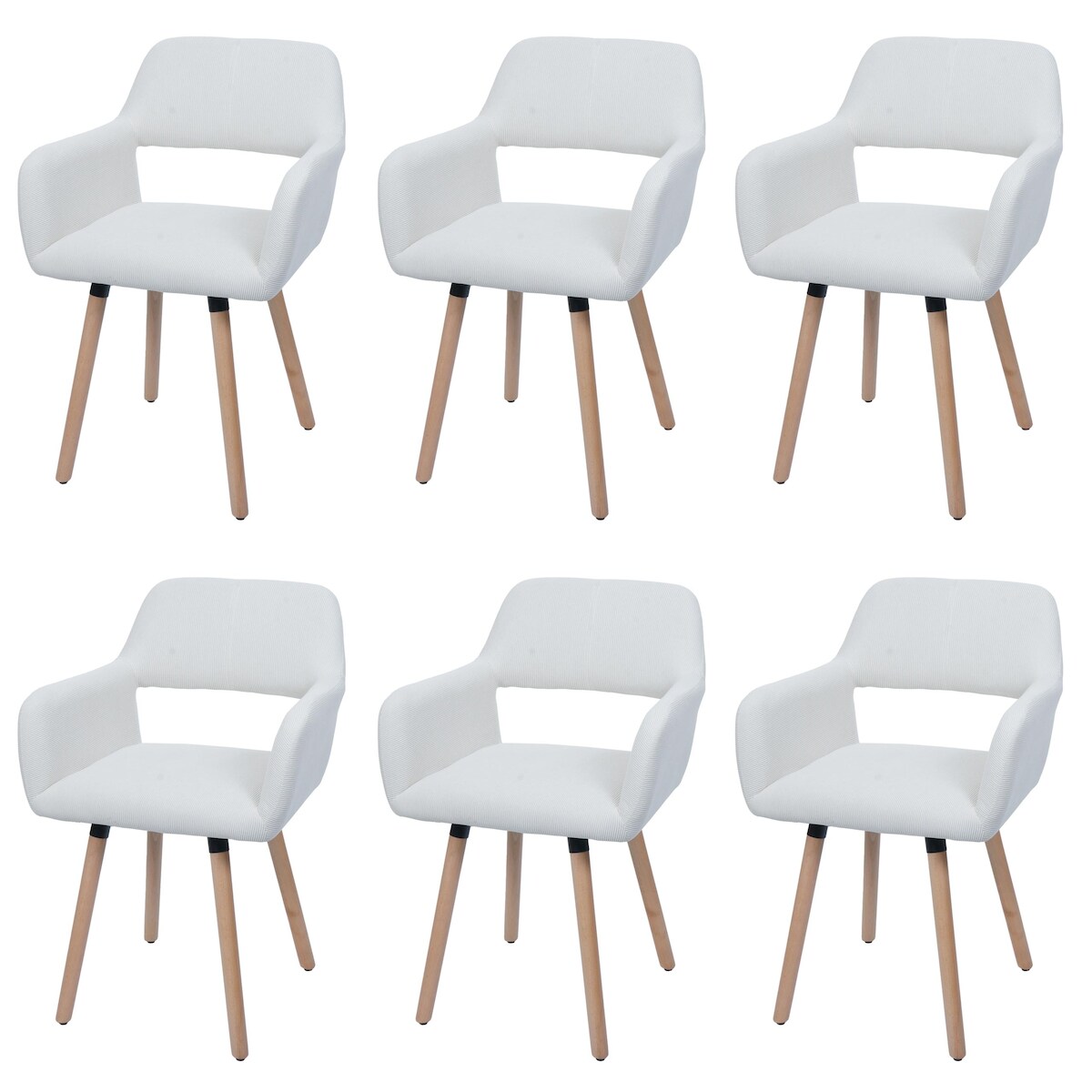 Mendler 6er-Set Esszimmerstuhl HWC-A50 II, Stuhl Küchenstuhl Polsterstuhl, Holz Stoff/Textil Cord (400g/m²) FSC® ~ creme-weiß