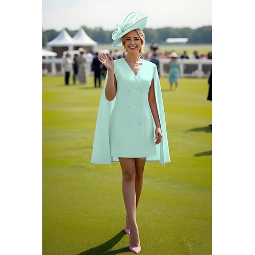Linea ad A Tubino Colonna Lunghezza al ginocchio Abito Derby Abito da cerimonia per signora Manica Corta Scollo a V Elegante Vintage Derby del Kentucky Tessuto Elasticizzato con Bottoni Tinta unita