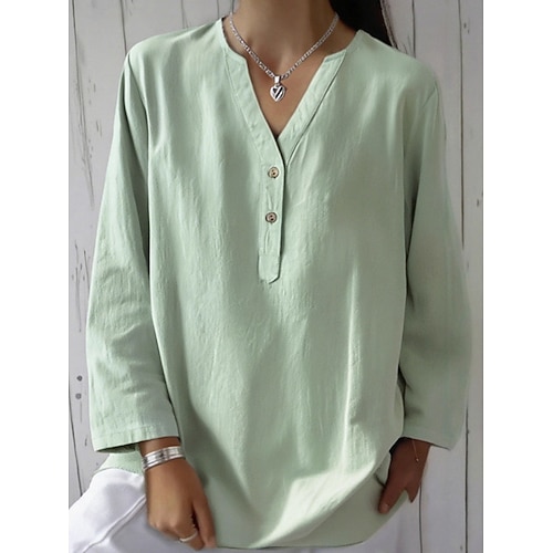 Per donna Blusa Top Eleganti Arricciato Patchwork Bottoni Tinta unica Semplice Elegante Signore Essenziale Manica Lunga Scollo a V Top Regolari Quotidiano Lavoro Ferie Verde chiaro Estate Primavera