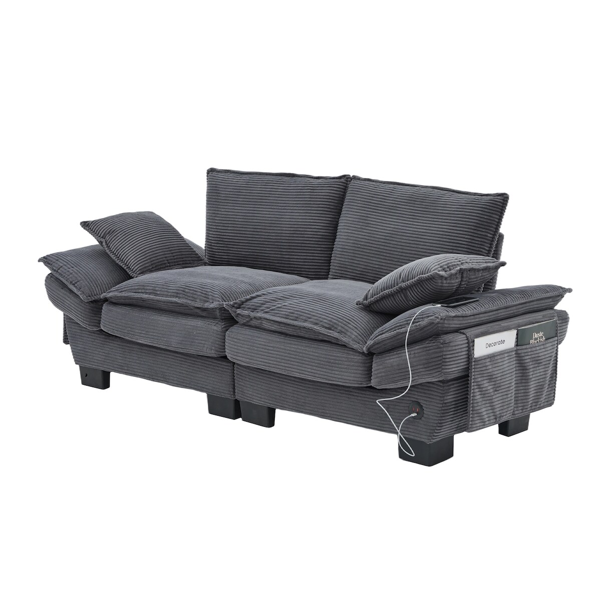 Merax 2-Sitzer-Sofa mit USB-C-Anschluss & Seitentaschen, Dicke Kissen, Corduroy, Dunkelgrau