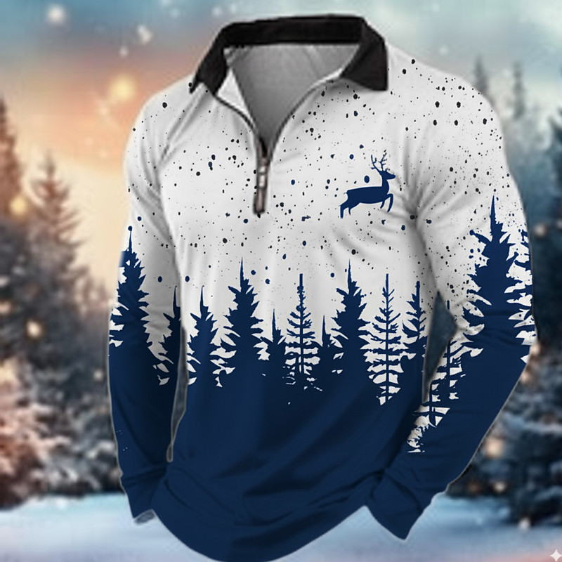 Christmas Men's Reindeer Polo Long Sleeve Turndown Modern Leisure Sports Outdoor Athleisure Festival Zipper 3D Print Spring Fall Winter Black Red Blue