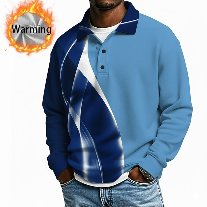 Men's Geometic Line Polo Shirts Themmal Shirts Long Sleeve Polo Shirts Lapel Casual Athleisure Holiday Daily Wear 3D Print Spring Fall Winter Blue Black Red