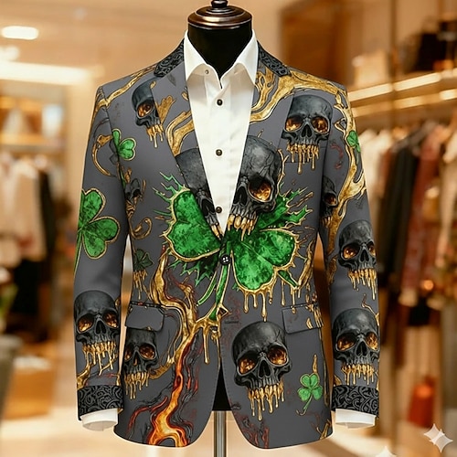 San Patrizio Per uomo Teschio Trifoglio Giacca blazer Cappotto Di tendenza Confortevole Traspirante Artistico Casual Quotidiano Abbigliamento da sera Festival Tasca Stampa 3D Bottoni Tutte le stagioni