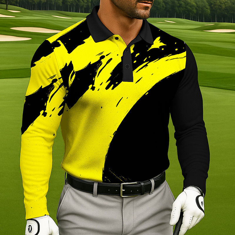 Men's Splash Ink Golf Shirt Long Sleeve Polo Shirts Collared Shirts Business Casual Athleisure Outdoor clothing Holiday Daily Wear 3D Print Buttons Spring Fall Winter White Yellow Red