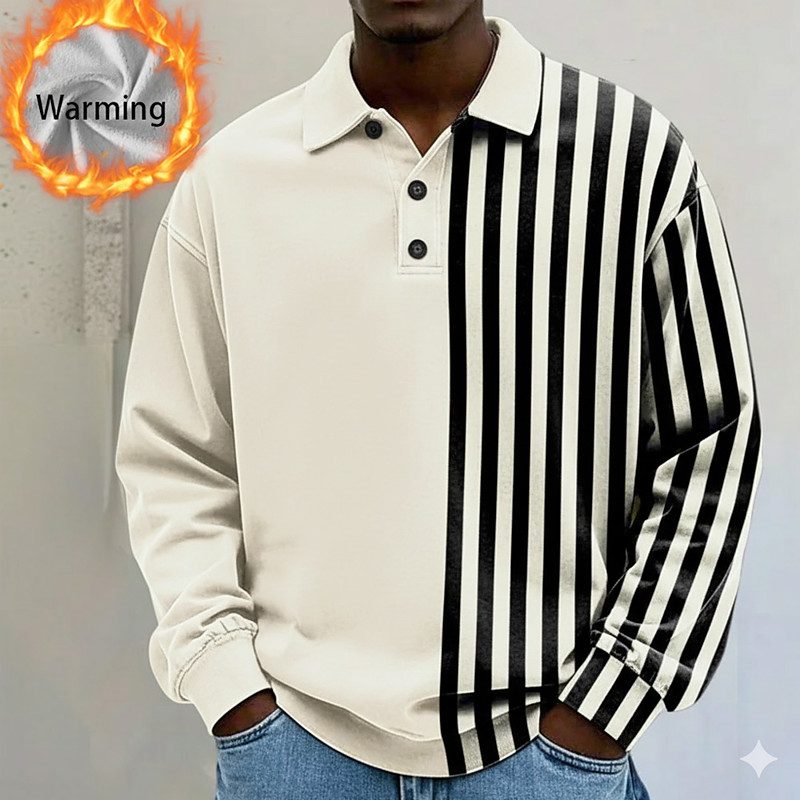 Men's Striped Polo Shirts Themmal Shirts Long Sleeve Polo Shirts Lapel Casual Athleisure Holiday Daily Wear 3D Print Fall Winter Blue White Green