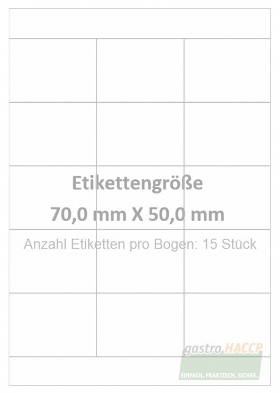 Wasser auflösbare Etiketten 70,0 x 50,0 mm(Anzahl Bögen /VPE: 600)