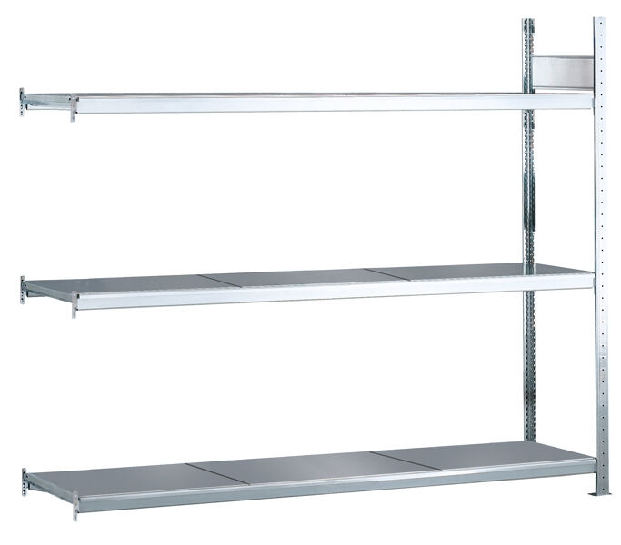 SCHULTE Lagertechnik Anbauregal, Weitspannregal WS 2000 mit Stahlböden, 2000 x 2500 x 500 mm (HxBxT), verzinkt, 3 Ebenen, Fachlast 400 kg, Feldlast 1.200 kg