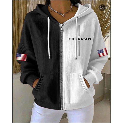 Per donna Felpe con cappuccio Grafico Semplice Elegante Caldo Moda Manica Lunga Con Cappuccio Top Regolari Casa Lavoro Streetwear Patchwork Cerniera Tasca Nero Bianco Rosso Autunno Inverno