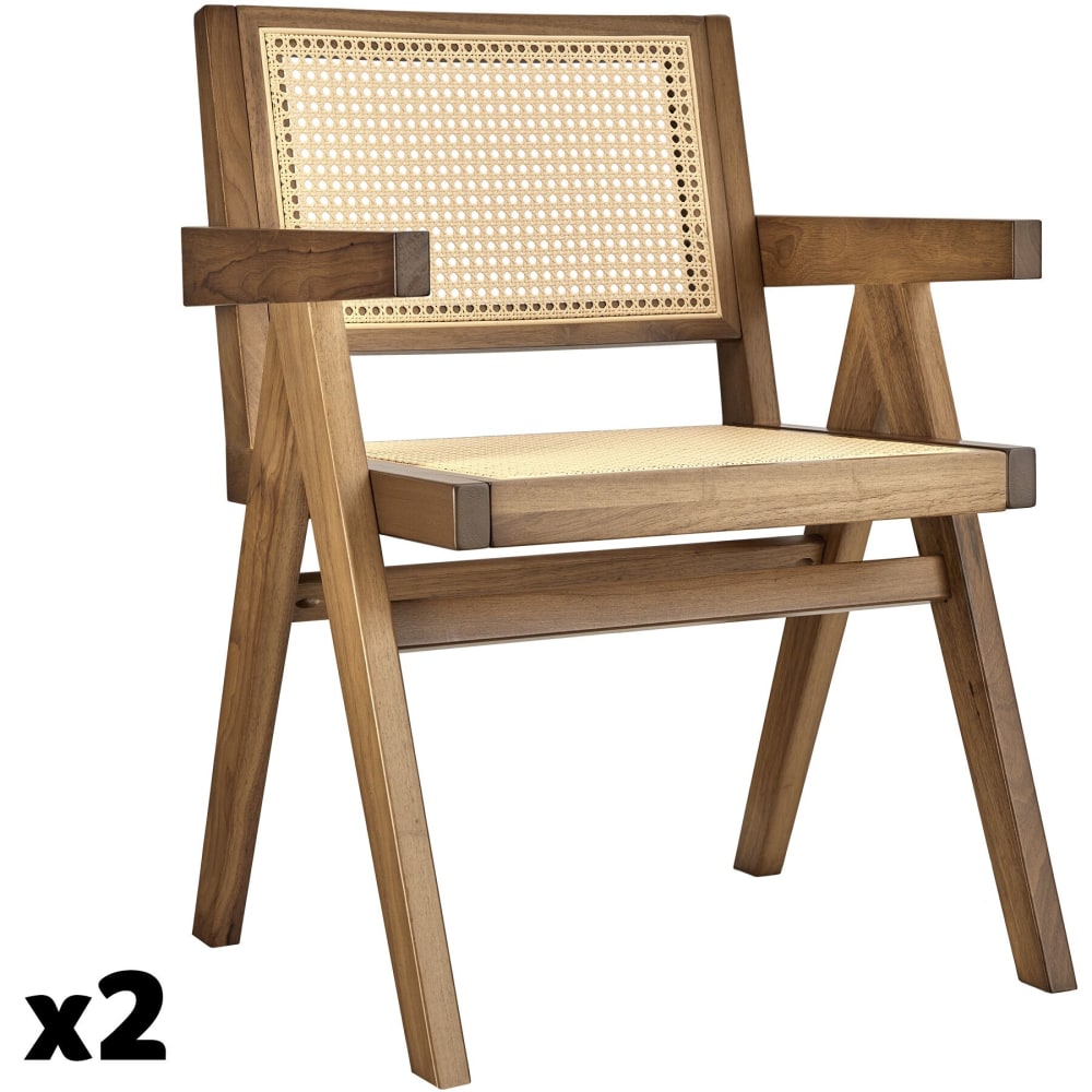Set di 2 sedie da pranzo in vimini e braccioli in quercia chiara