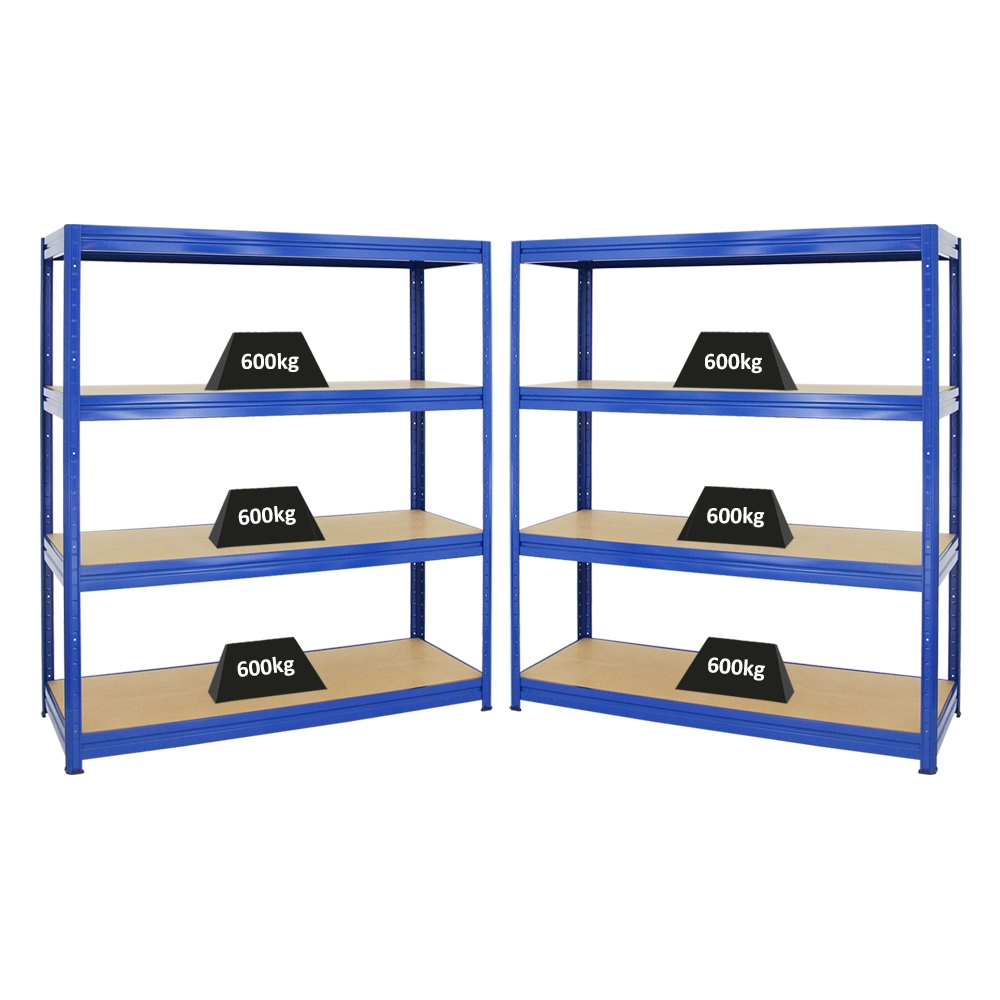 PROREGAL Mega Deal | 2x Schwerlastregal Dino | HxBxT 180x160x60 cm | Fachlast 600kg | Blau | Stecksystem Lagerregal Regalsystem 2 Stk.