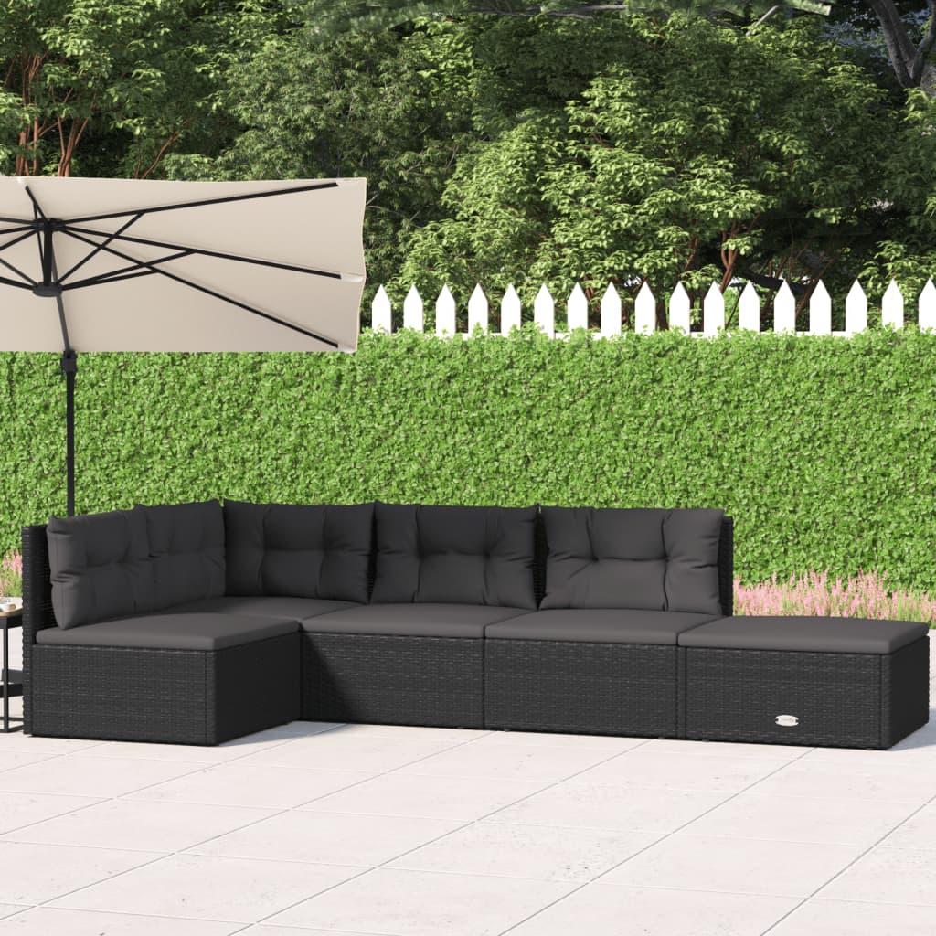 Loungesæt til haven 5 dele med hynder polyrattan sort