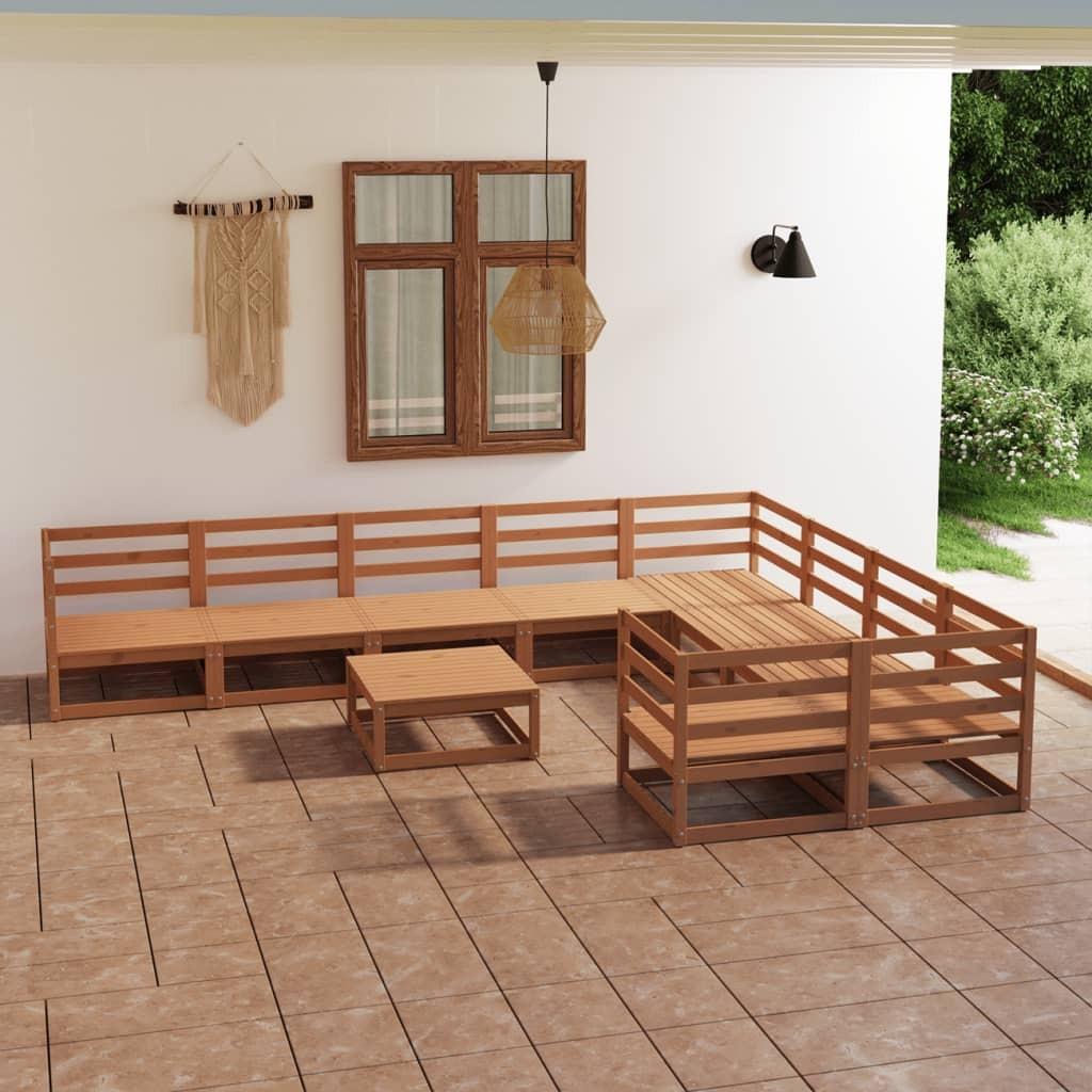 Loungesæt til haven 10 dele massivt fyrretræ