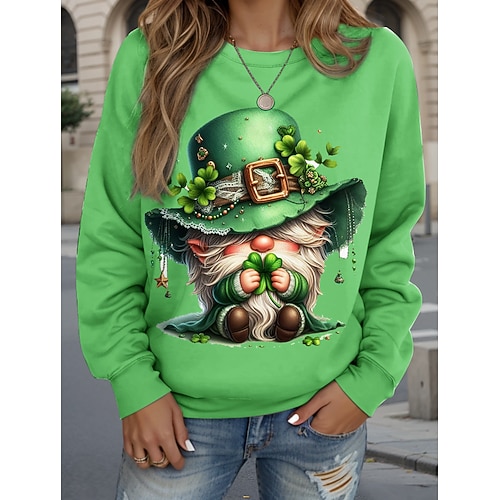 T-shirt da donna per il Giorno di San Patrizio cartoon trifoglio casual maniche lunghe collo rotondo top regolari stampa quotidiana verde primavera autunno
