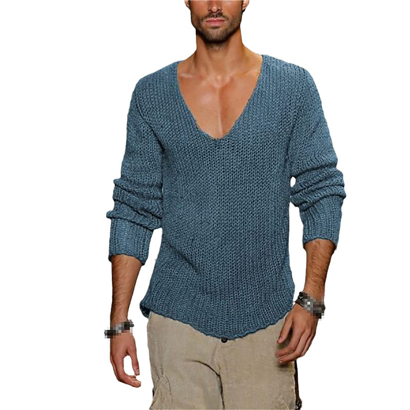 Men's Sweater Pullover Sweater Jumper Ribbed Knit Knitted V Neck Daily Wear Vacation Clothing Apparel Spring Fall Gray 5XL