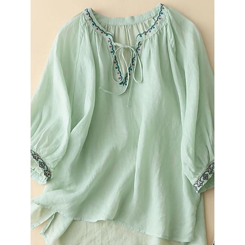 Women's Blouse Floral Stylish Casual 3/4 Length Sleeve V Neck Regular Tops Daily Embroidered White Pink Green Summer Spring