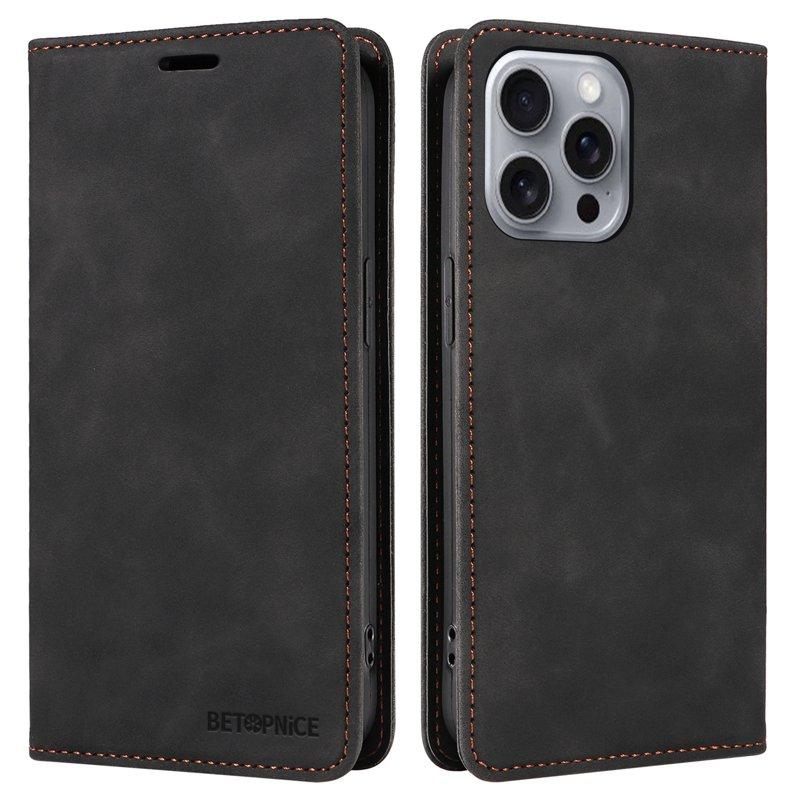 BETOPNICE 003 iPhone 16 Pro Max Plånboksfodral Konstläder - Svart