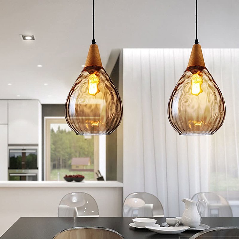 LED Chandeliers, V-intage Pendant Lamp,Creativity Solid Wood Glass Pendant Light, Amber Single Head Design Chandelier for Bathroom, Dining Room, Warehouse, Living Room, Corridor, Balcony