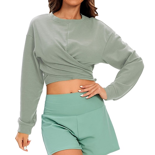 Per donna Maglietta corta pullover Felpa da yoga Morbido Controllo addominale Manica Lunga Gli sport Tinta unica Top Per Palestra Atletico Pilates Abbigliamento sportivo
