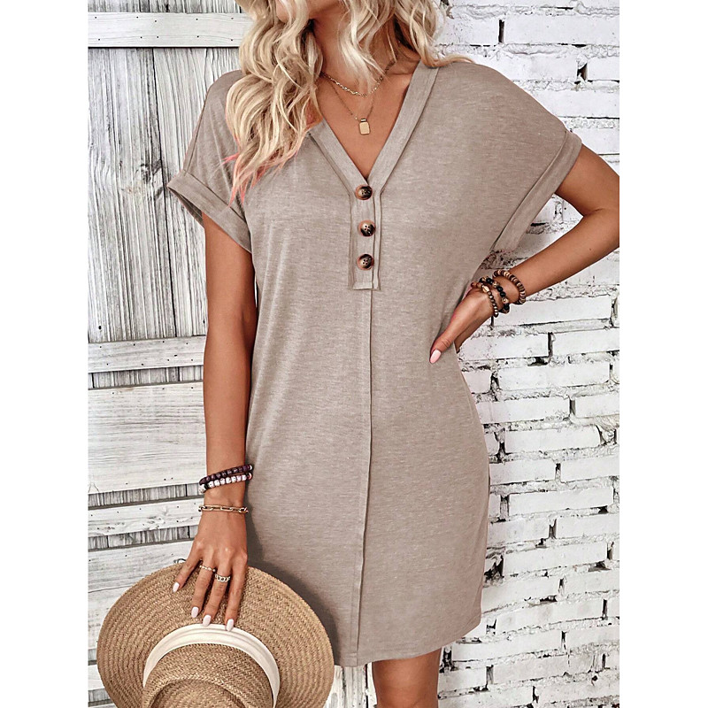 Women's Mini Dress Linen-Inspired Dresses Casual Dress Plain Dress Casual Sports Outdoor Street Regular Fit Plain Short Sleeve Cowl Neck V Neck Pink Green Summer Spring