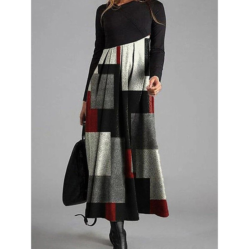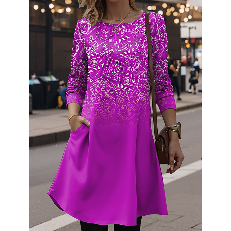 Women's Midi Dress Sheath Dress Shift Dress Casual Daily Regular Fit Graphic Paisley Abstract Long Sleeve Crew Neck Red Blue Purple Green Spring Fall Winter Autumn