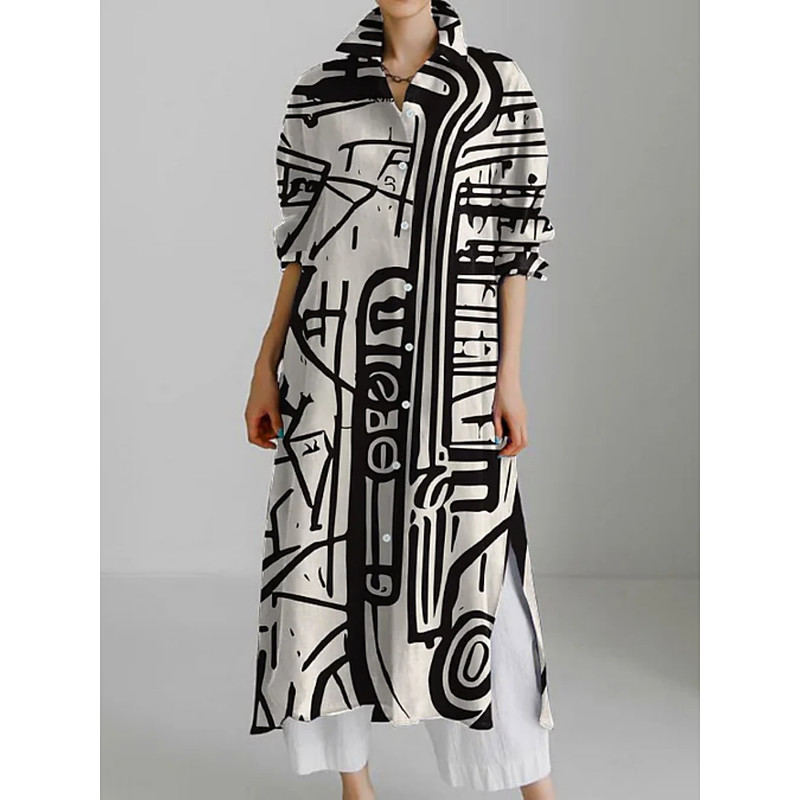 Women's Midi Dress Shirt Dress Casual Dress Fashion Modern Daily Holiday Weekend Regular Fit Geometric Color Block 3/4 Length Sleeve Shirt Collar Apricot Summer Spring Fall