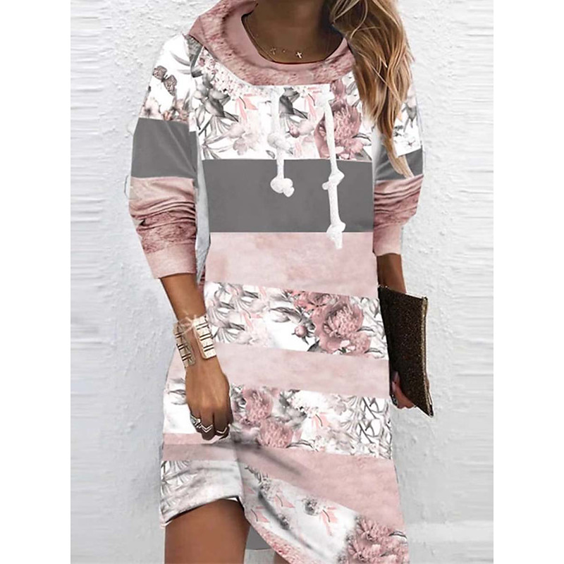 Women's Mini Dress Sheath Dress Shift Dress Party Casual Boho Outdoor Home Sport Regular Fit Floral Graphic Long Sleeve Hooded Pink Dark Grey Gray Spring Fall Winter