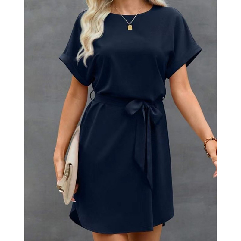 Women's Mini Dress Satin Dress Fashion Modern Outdoor Vacation Holiday Regular Fit Plain Short Sleeve Crew Neck Wine Blue Dark Green Green Summer Spring Fall