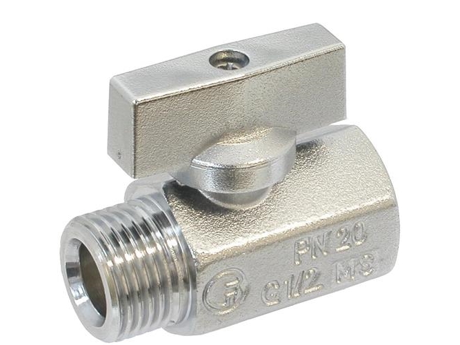 Mini-Kugelhahn Rotguss 1/2'' Muffe/Nippel
