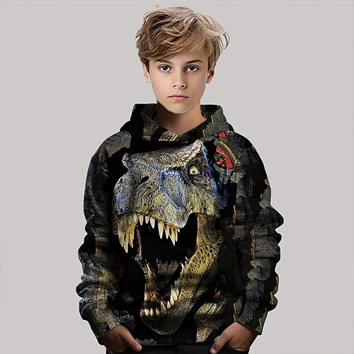Jungen 3D Dinosaurier Kapuzensweatshirt Langarm Frühling Herbst Mode Streetwear Kinder 4-12 Jahre Mit Kapuze Outdoor Lässig Täglich Normale Passform