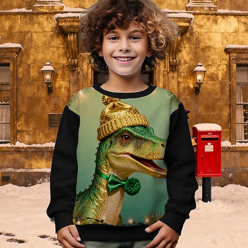 Weihnachten Jungen 3D Dinosaurier Sweatshirt Langarm Frühling Herbst Mode Basic Kinder 4-12 Jahre Rundhalsausschnitt Outdoor Lässig Täglich Normale Passform