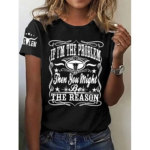 Per donna Maglietta Grafico Lettera Vintage Elegante Classico Manica Corta Girocollo Top Regolari Quotidiano Stampato Nero Bianco Blu Verde Grigio Estate Primavera
