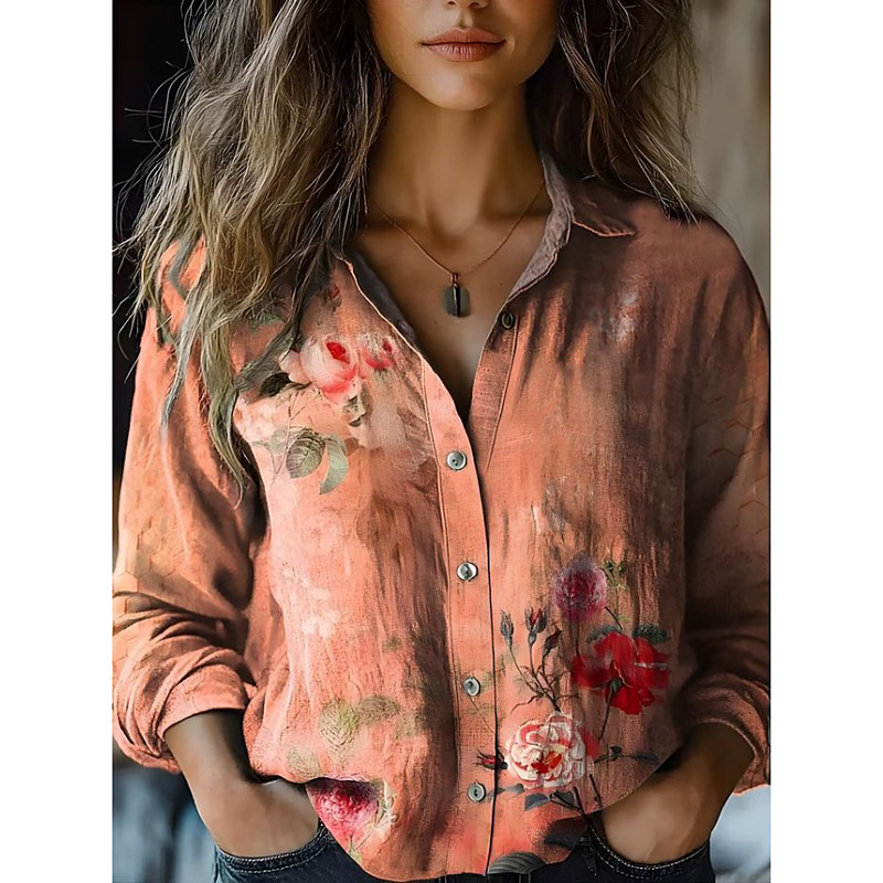 Women's Shirt Button Down Tunic Shirt Collar Long Sleeve Floral Graphic Abstract Vintage Tropical Daily Regular Tops Work Daily Holiday s Print Black Pink Purple Orange Light Blue Summer
