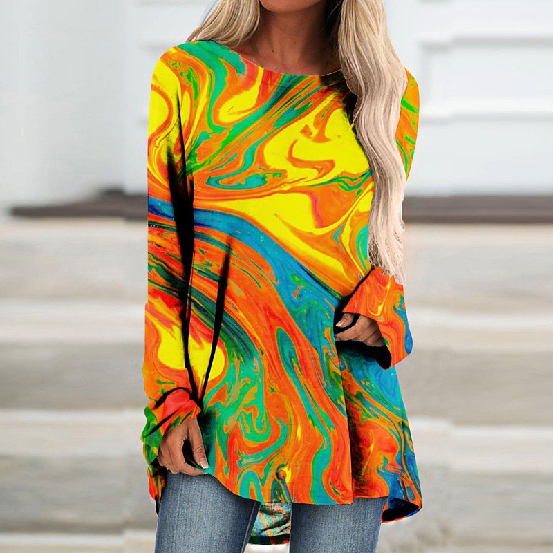 Women's Blouse Color Block Abstract Vintage Stylish Long Sleeve Crew Neck Long Tops Daily Holiday Going out Print Black Pink Blue Purple Orange Fall Winter