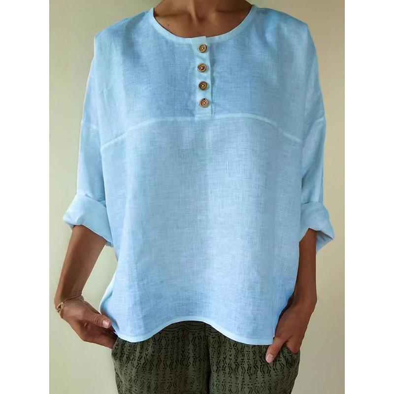 Women's Cotton Linen Shirts Elegant Bohemia Vintage Long Sleeve Crew Neck Regular Tops Daily Holiday Buttons Orange-red Black White Pink Sky Blue Summer Spring Fall Winter