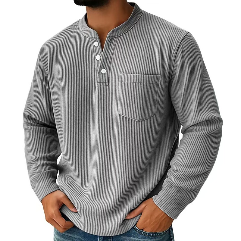 Men's Corduroy Shirt Henley Shirt Tee Long Sleeve Solid Color Plain Textured Fashion Designer Casual Pocket Buttons Warm Henley Casual Daily Outdoor Summer Fall Winter Light Blue Burgundy Navy Blue