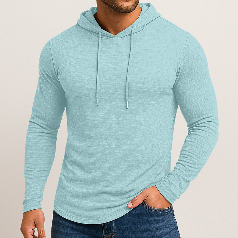 Men's T Shirt Long Sleeve Hooded Spring Fall All Seasons Solid Color Traditional / Vintage Hoodie Hooded Plain Outdoor Casual Activewear Light Blue White Dark Brown Top Tee for Men