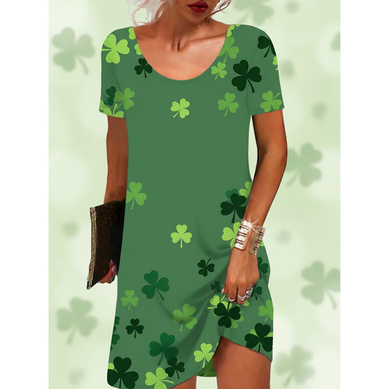 St. Paddy's Day Women's Mini Dress Casual Dress T Shirt Dress Tee Dress Fashion Modern Daily Outdoor St. Patrick's Day Regular Fit Graphic Clover Short Sleeve Crew Neck Light Green Army Green Dark