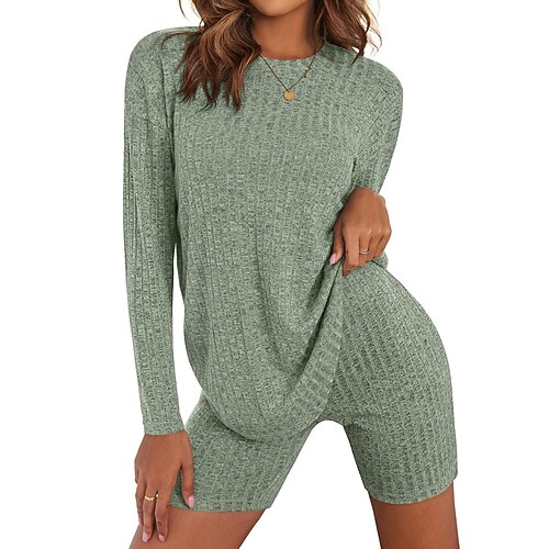Per donna Set di Pantaloncini Bolero Top Manica Lunga Girocollo Tinta unica Moda Streetwear Casuale Quotidiano All'aperto Blu Nero Rosso Estate Vestibilità regolare