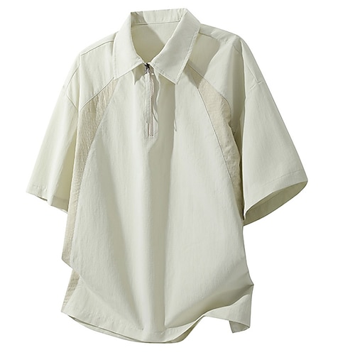 Per uomo Camicie di lino Polo Casuale Vacanza Bavero Manica Corta Moda Essenziale Tinta unica Raffreddamento Zip a un quarto Estate Primavera Rosa chiaro Nero Albicocca Camicie di lino