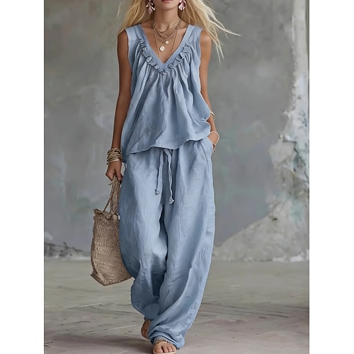 Per donna Set di biancheria in cotone Set da due pezzi Set di Pantaloni Senza Maniche Scollo a V Tinta unica Moda Streetwear Casuale Quotidiano All'aperto Nero Giallo Rosa Estate Vestibilità regolare
